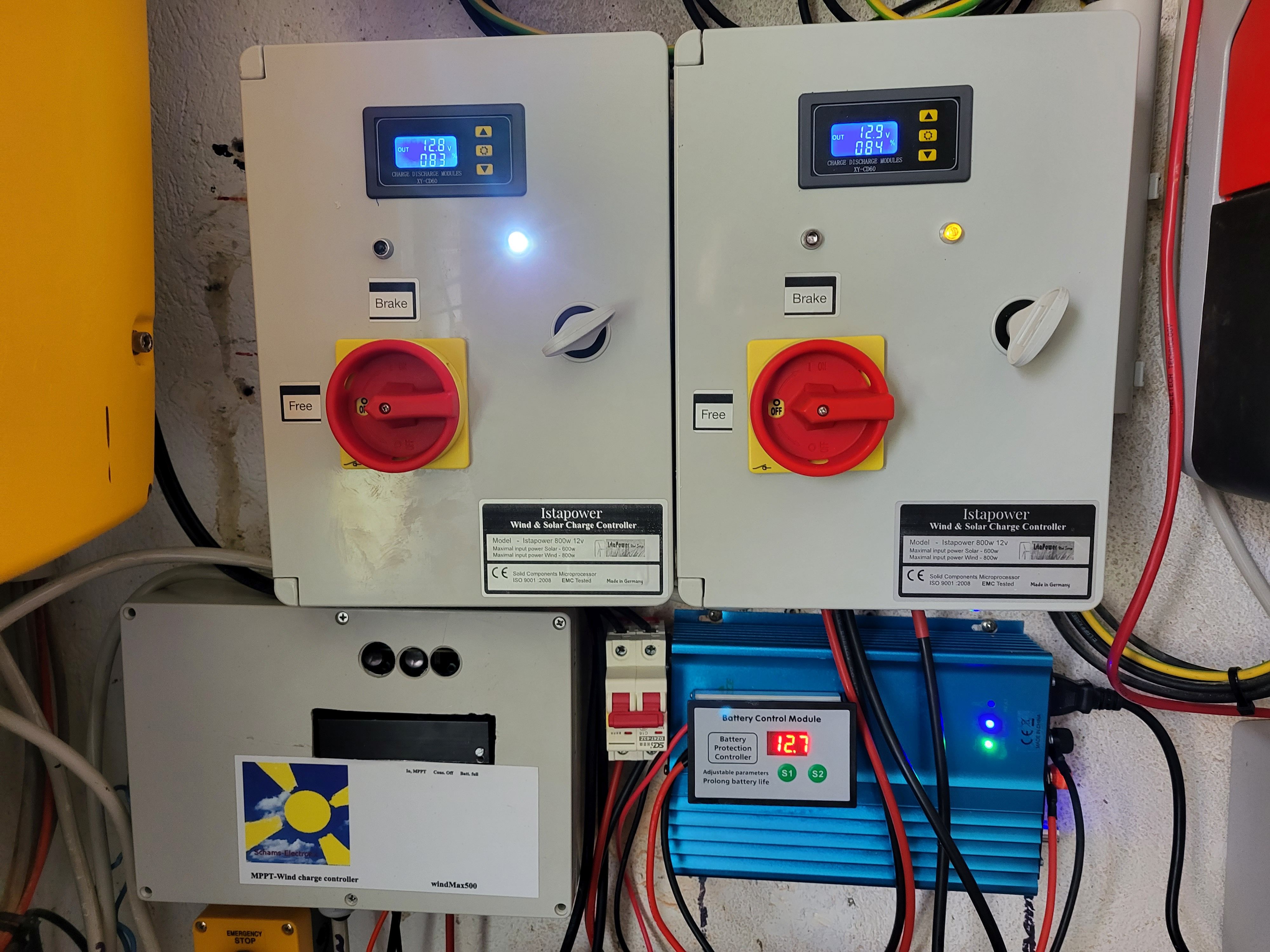 So nebenbei, habe ich nunmehr zwei Laderegler von Istabreez und eben den einen vom Schams. Und an dem einen von Istabreez habe ich zusätzlich zwei kleine 200 Watt Solarmodule angebracht, sodass ich zumindestens bei Sonnenschein am Tag so 400 Wh ernten kann und ein Erfolgserlebnis habe.
