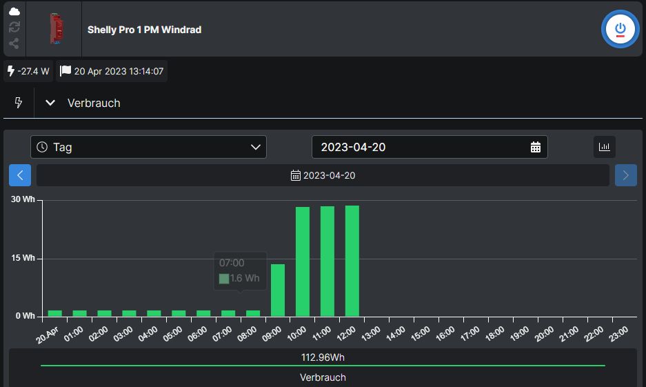 die beiden kleinen PV-Module (und theoretisch die Windräder, bei 1,8m/s aber kaum) liefern derzeit laut meiner Shelly rund 27,4 Watt ins Netz.