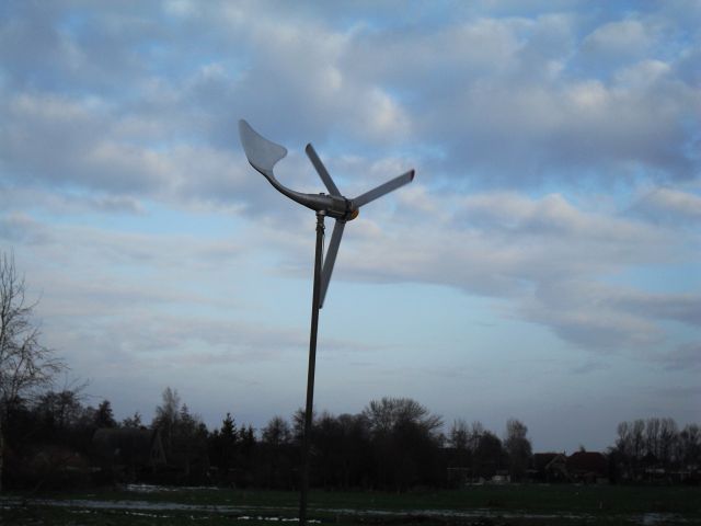 Vor Weihnachten habe ich dann die neue Anlage (F-T-G FD3.17) bekommen. Diese macht wirklich einen sehr viel solideren Eindruck. Habe die neue Anlage auch gleich auf den Mast gestellt und bin mit dem Laufverhalten bis jetzt sehr zufrieden. Der geringere Durchmesser macht sich nicht negativ bemerkbar. Meine alte Anlage hat sich bei böigem Wind sehr häufig aus dem Wind gedreht und dadurch nur die "halbe" Zeit Erträge geliefert.. Dieses ist jetzt nicht mehr der Fall. Die F-T-G FD3.17 hält sich sehr schön im Wind und bei ca. 4m/s beginnt die Ladung der Akkus........