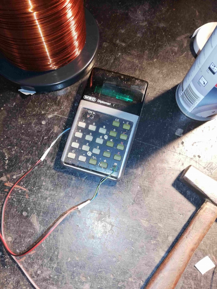 Zum Zählen der Umdrehungen habe ich einen Taschenrechner verwendet welcher damals von meinem Vater zum Windmessen verwendet wurde. (Da gabs in einem Buch mal eine Anleitung dazu..)