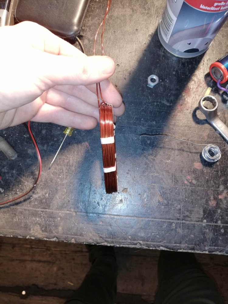 Genau. Hab die erste Spule mal händisch gewickelt um ein Gefühl dafür zu bekommen.