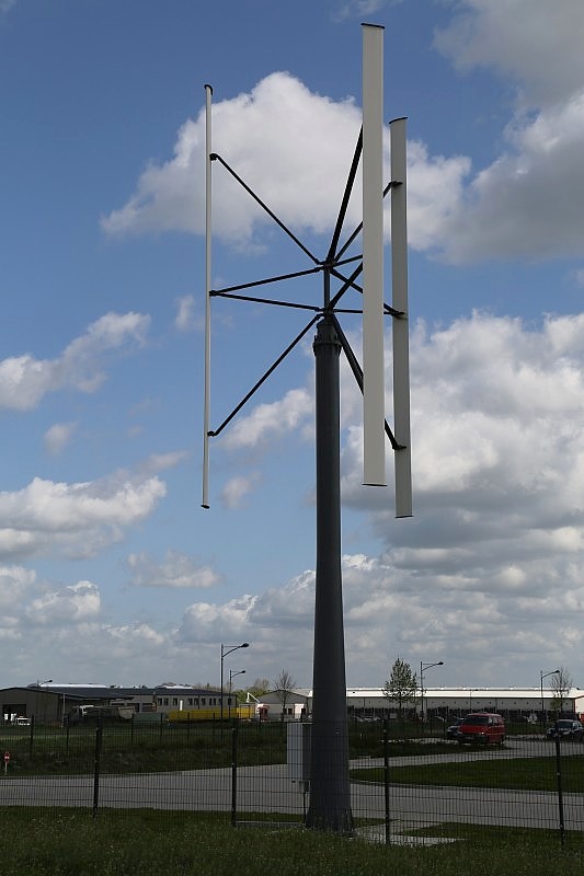 Das außen hohl nach innen gewölbte Profil ist jedenfalls sehr ungewöhnlich für einen Darrieus, man könnte das entfernt mit dem Wanda vergleichen. Was ich schon zuvor angedeutet hatte, dass asymmetrische Flügel auf den gegenüberliegenden Drehkreishälften unterschiedlich - mal mit Druck- mal mit Zugkraft auf die Nabe eine Wechselwirkung die Lastwechsel und die Fliehkraft mit betreffend verursachen, mag bei so kleinen Rotoren weniger ins Gewicht fallen.
