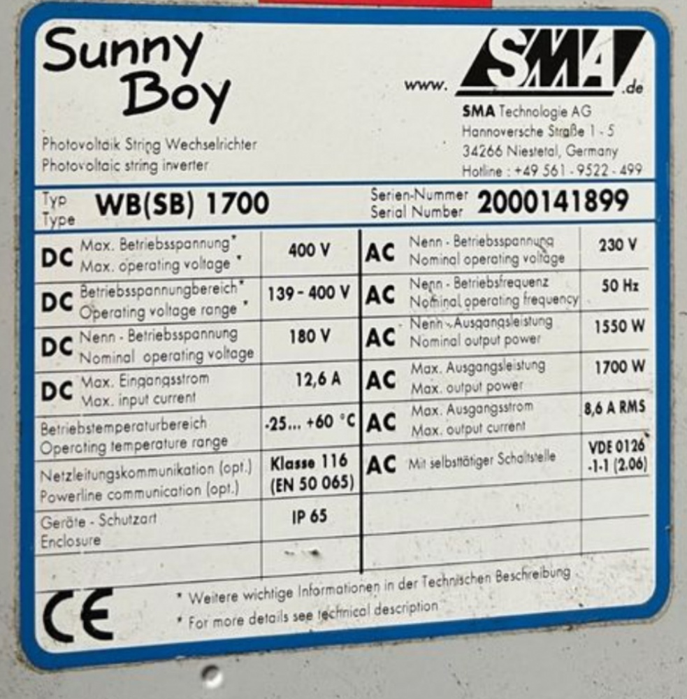 Ja, die Windy Boy sind im Prinzip Sunny Boy mit einer auf Windkraft vorprogrammierten Kennline. Deswegen steht auch als Typ WB (SB) 1700