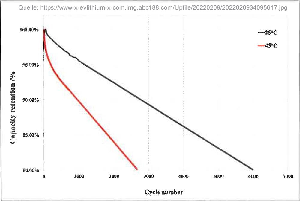 5000 Zyklen bei 0,2 C Ladung/Entladung und 70% Entladetiefe"