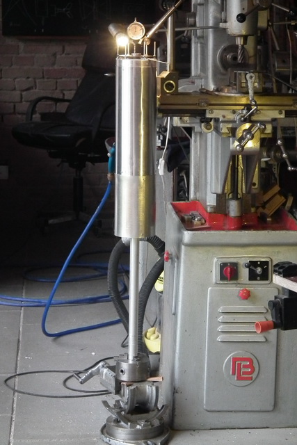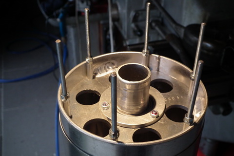 rechts im vordergrund die fixierung der kugellager in der trägerplatte für das mittelrohr.