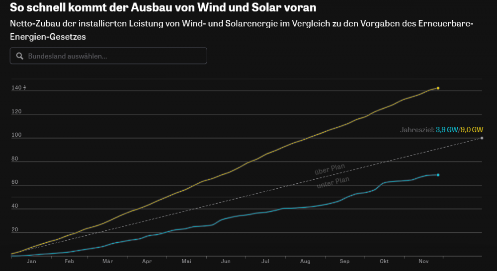 Mit neuen PV-Anlagen ist es dieses Jahr gut gelaufen, das Ziel der Neu Zubau wurde schon im September erfüllt, aber leider liegt die WKA weit zurück
