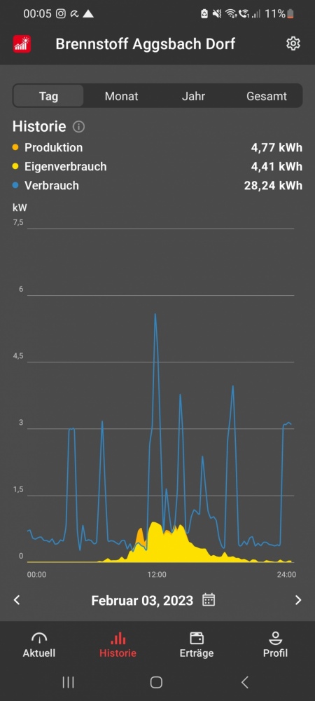 Dafür das erste mal bei knapp 1,5kw übern tag.