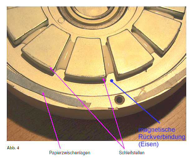Schade das man die trapezförmigen original Neodymmagnete nicht mehr weiter außen auf die Scheibe bringen kann, sie noch zu lösen wo sie jetzt im inneren Drehkreis sind würde sie mit fast 100% Sicherheit schrotten.