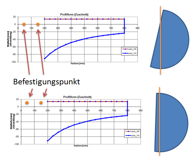 Ich hätte jetzt einfach vorgehabt den Vorschlag von XXLRay zu verfolgen und die resultierende Blattform vom RowiTool etwas abzuändern, so dass der Bereich über der Null-Linie nur zur Befestigung dient. Etwa so: