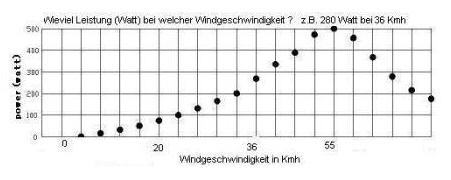 Hast du eine Kurve bei welcher Windgeschwindigkeit welche Leistung erzeugt wird ?