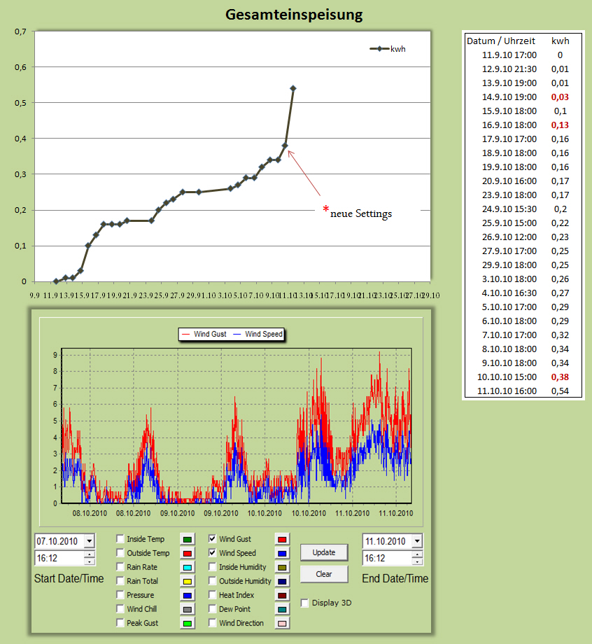 Für den interessierten Leser hier mal ein Update in Sachen Einspeisung.