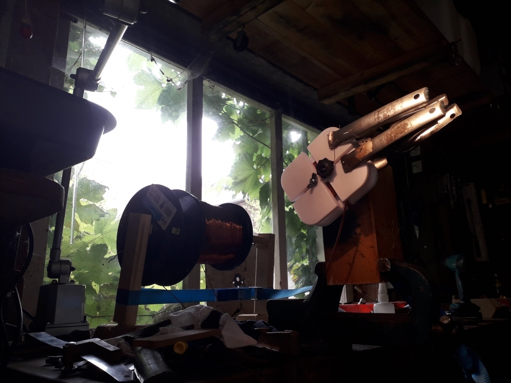 1. Harzschicht zum Fixieren der Spulen, dann verlöten.