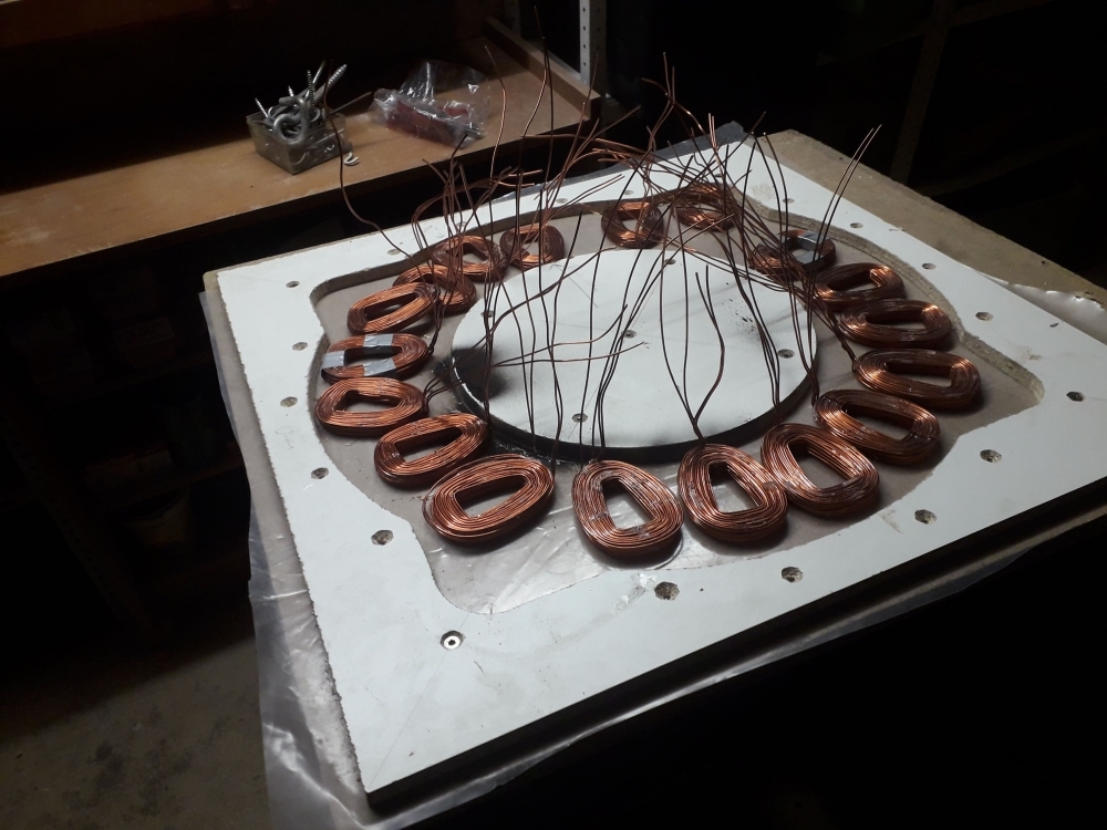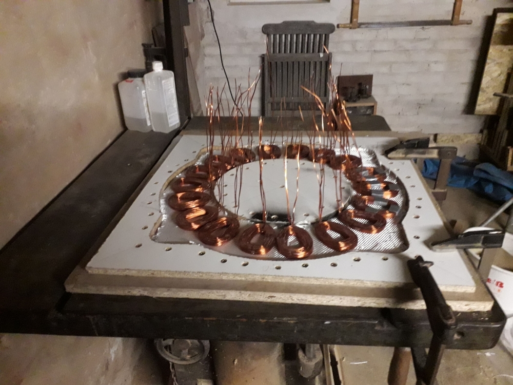Moin Jetzt nochmal ein Update! habe endlich alle Spulen fertig, die Gussform ist so gut wie fertig und die Magnetscheiben sind Lackiert!