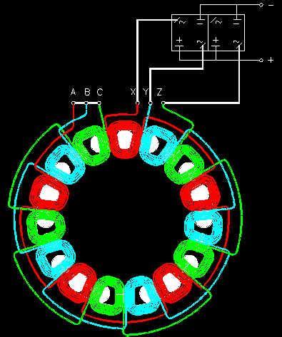 eine Seite der Stränge im Stern Punkt zusammenschalten. Restlichen 3 Enden Rauslegen.