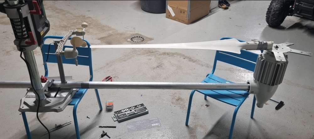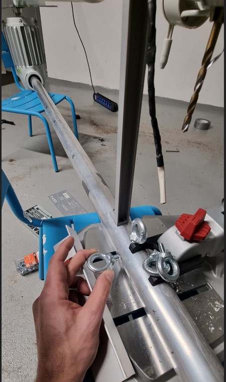 Wie erwähnt befinden sich in Richtung unserer primär Windrichtung 2 ziemlich dicke Findlinge. In diese habe ich 2 schicke Löcher gebohrt und M12 Stahlbetonanker reingeschraubt (rated u. zertifiziert für Naturstein