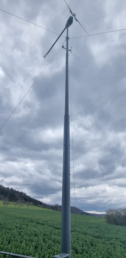 Die Gesamt-Länge dürfte etwa 8m sein, der WR sitzt bei mir direkt am Fuße des Windrads in einem Schaltschrank zusammen mit der restlichen Technik.