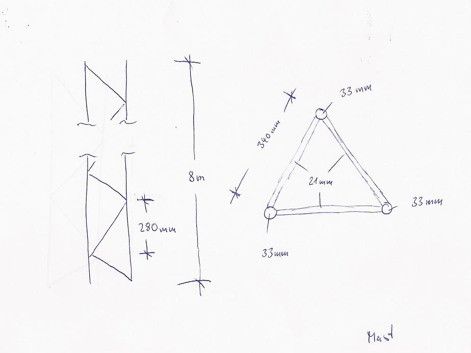 Nun habe ich mir einen Rohrgittermast von 8m günstig besorgt, woran ich noch ein 4,5" Rohr am oberen ende anbauen möchte welches den Mast nochmals um 1,5m verlängert.
