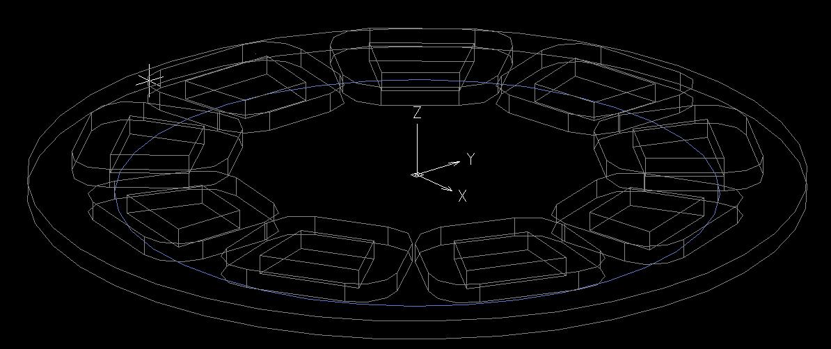 Da ich einen solche großen Luftspalt für mein Projekt nicht benötige, habe ich mich nun dazu entschlossen nur eine Rotorscheibe mit Magneten zu bestücken und damit die Kosten für Magnete zu halbieren. Mein geplanter Luftspalt liegt dadurch bei 12 mm und bietet genügend Platz für die Unterbringung der Windungspakete, wobei jeder Spulenschenkel 20 mm breit und 8mm hoch sein wird. SOmit habe ich noch 4mm für die Luftspalte zwischen Stator und Rotor, den man sicherlich geringer halten könnte aber falls sich durch Lagerschaden oder Temperatoreinfluss mal was verzieht habe ich somit etwas Spielraum. In meinem Fall werden es 12 Magnete sein die zwischen ihnen und der gegenüberliegenden EIsenscheibe eine Flussdichte von rund 0,7 Tesla im Luftspalt aufbauen.