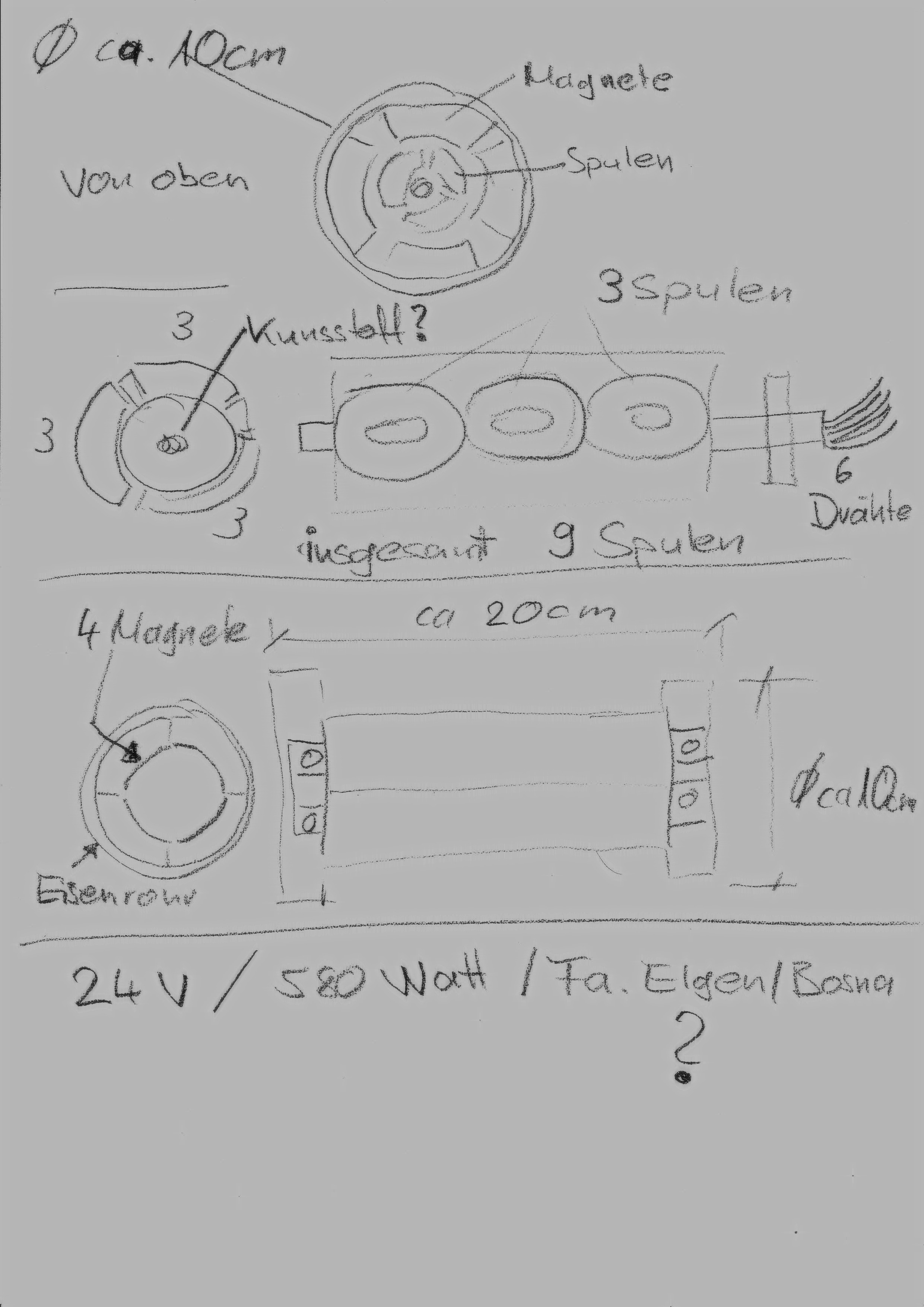 bin gerade aus dem Herbsturlaub zurück und möchte Euch hier ein Ding vostellen, was angeblich ein Generator sein soll. Leider hatte ich keine Camera dabei um das Teil zu knipsen und habe deshalb eine grobe Skizze gemacht.