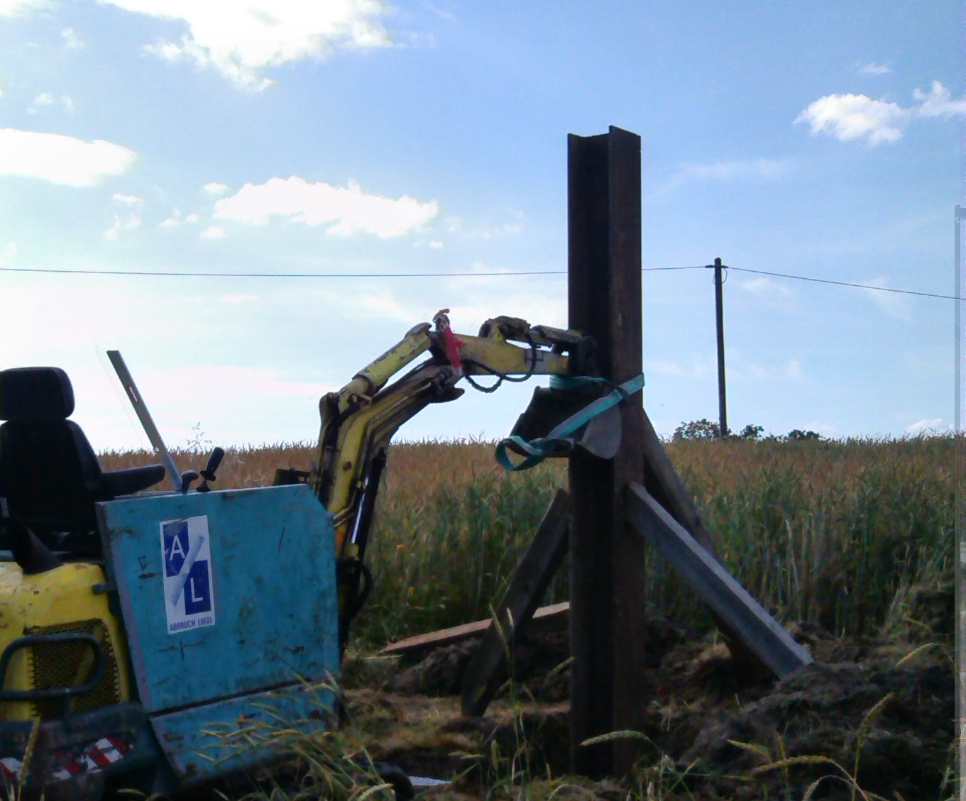 So dala. Langsam wird das was. Diese Woche habe ich das Fundament betoniert und gemeinsam das untere Teilstück des Mastes den Doppel-T-Träger senkrecht aufgestellt.