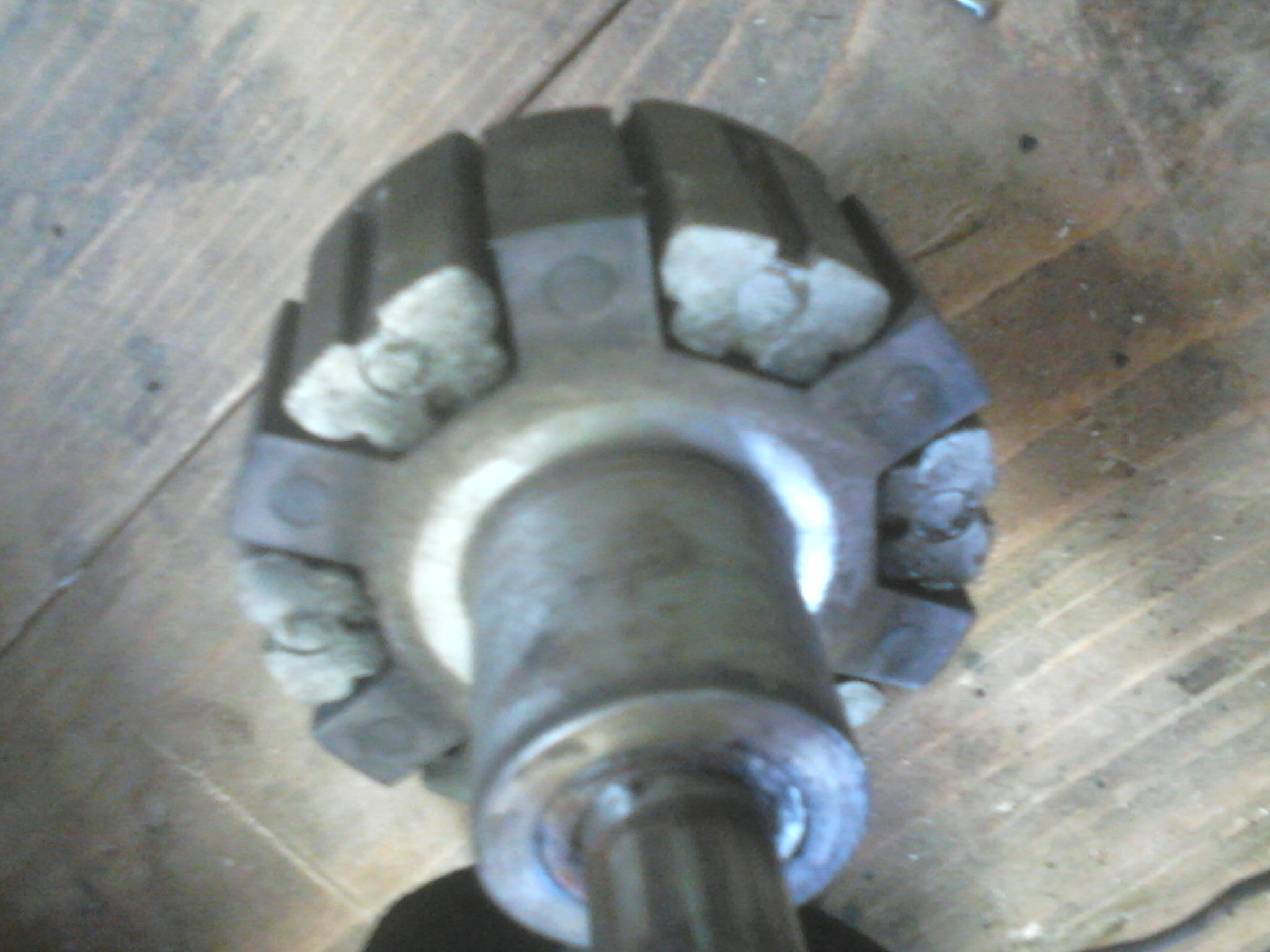Er sollte an den schmaleren Eisenteilen fest anliegen, und auf der anderen Seite mit einer Eisenscheibe 10 bis 15 mm dick, die fest auf der Welle sitzt, abschliessen.