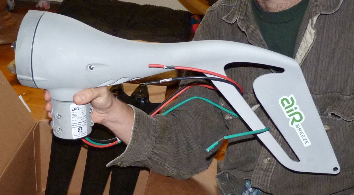 Wir leben off grid in Irland in einem Häuschen in Alleinlage, an dem eine kleine Windturbine installiert ist.