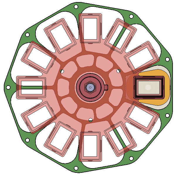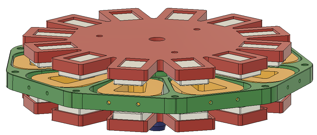 - Auf jeder der beiden Rotorplatten sind 12 Magnete angeordnet