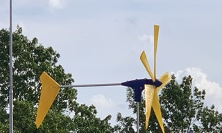 Der Rotordurchmesser scheint bei diesem gelben Horizontalläufer nicht viel weniger als 1 m zu betragen weshalb dafür etwas größere Generatoren als der vorgeschlagene kleine "Stepper" in Frage kämen. Habt ihr schon einen passenden Generator? Für Windräder ab etwa 70 cm Durchmesser kämen u.U.Nabendynamos von Fahrrädern in Frage, beim Horizontalläufer müsste es dann einer mit Vollachse sein.