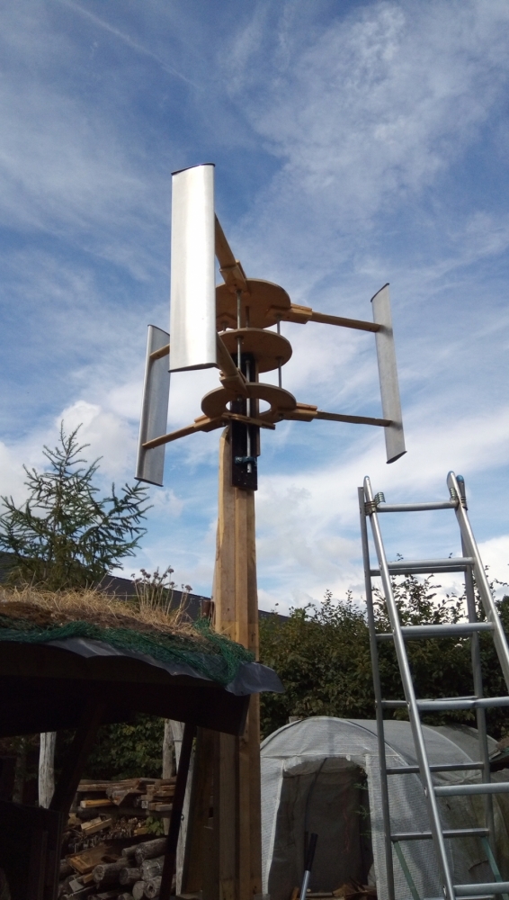Vom Umbau zum C-Profil halte ich garnichts. Ist es doch dann kein Darrieus mehr. Und die Gesamtwirkungsgrade rein praktisch schon beim Darrieus dieser Größe und Bauart keine 20% und mit C-Profil...?