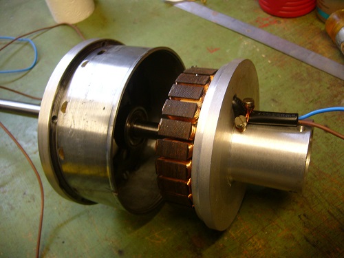 Dieser ist flach im Statorpaket und wurde mir horizontalen Bürsten bestromt.