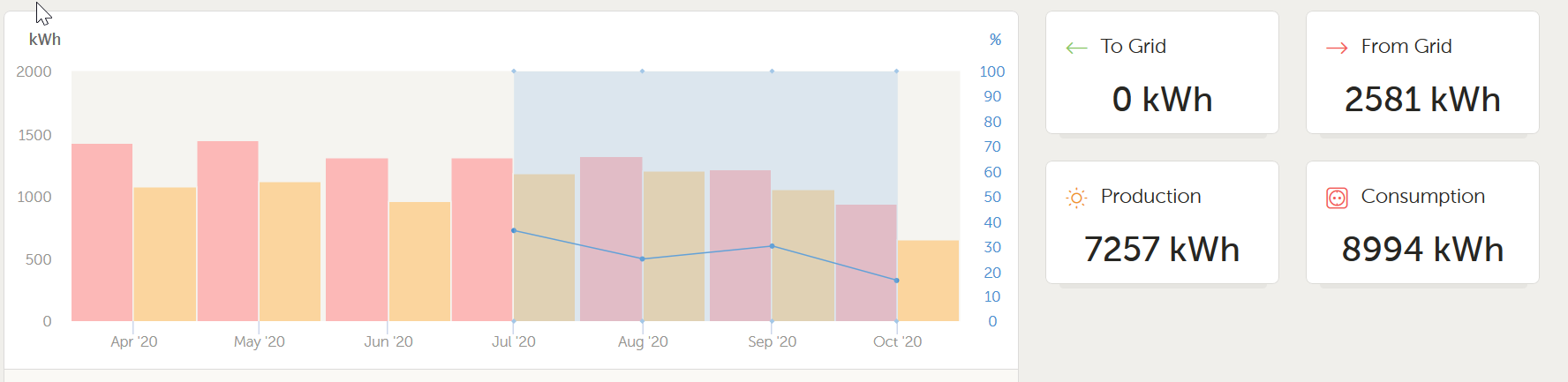 Hier mal das letzte halbe Jahr man sieht es fehlt gar nicht mehr so viel die Solar anlage macht nen guten Job.... alles was derzeit fehlt kommt vom Stromanbieter. Das wollte ich noch nen bissel drücken mehr nicht.