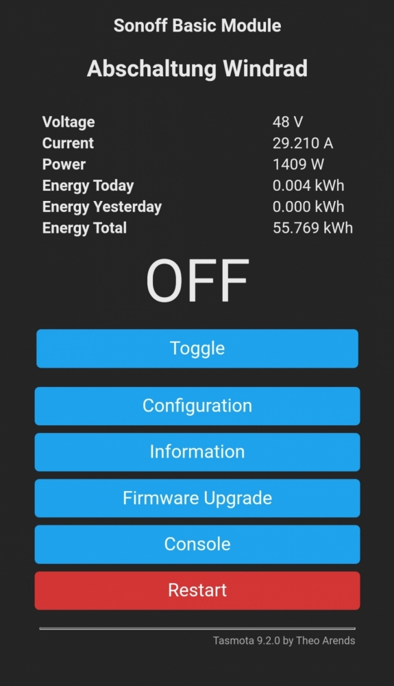 Ich habe mir auf der Basis eines PZEM Messmodules und einem ESP8266 eine kleine Fernüberwachung mit der Möglichkeit zur Abschaltung der Anlage gebaut.