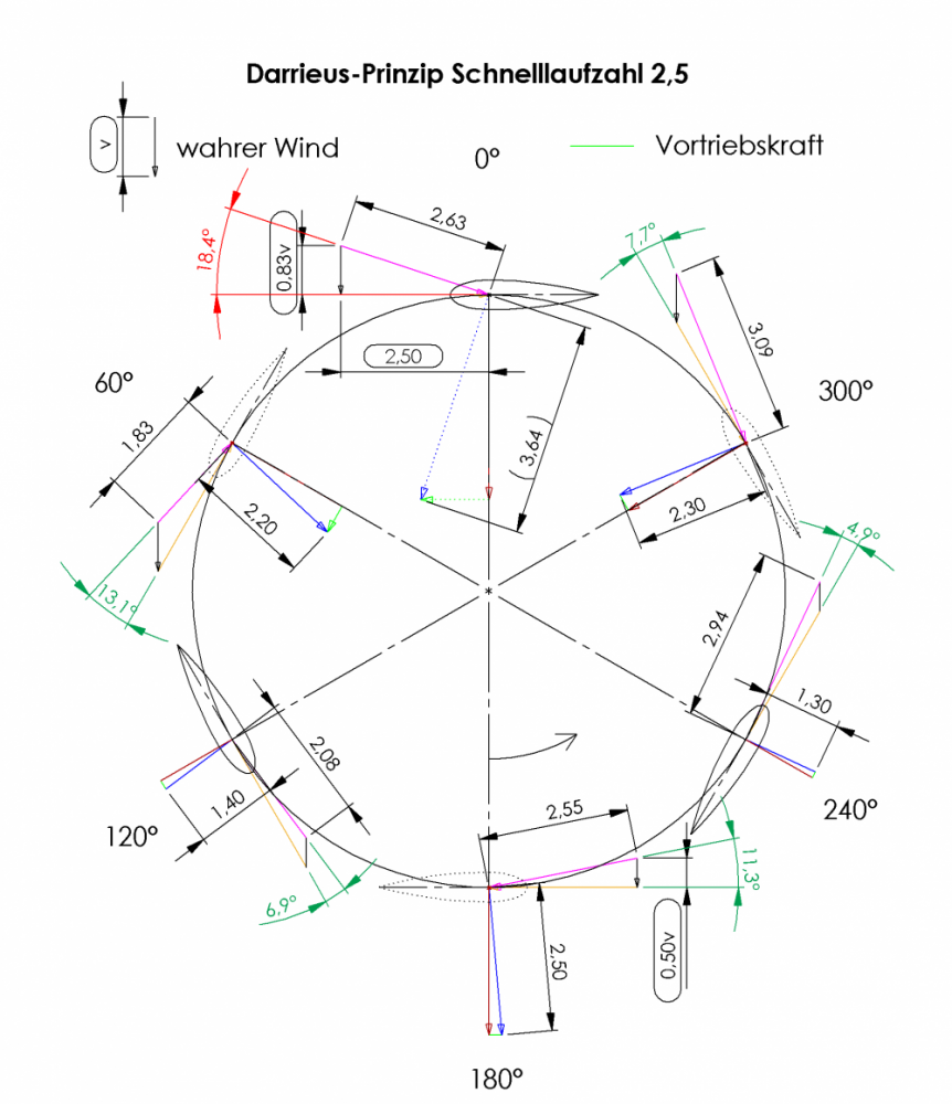 Den Darrieus auf dem Hausdach hab ich aufgegeben weil das mit dem wenigen Wind bei mir ( Windatlas 3,2 m/s, eigene Messung über 1 Jahr mit Wetterstation auf dem Kamin in Firsthöhe ergab: 1 - 2 m/s = 28% der Zeit, 2 - 3 m/s = 19%, 3 - 4 m/s = 12%, 4 - 5 m/s = 5%, 5 - 6 m/s = 3%, 6 - 7 m/s = 2% und alles darüber zusammen nur 2 % der Zeit.) einfach nichts bringt. ich muß höher hinaus und das geht vom Dach aus nicht.
