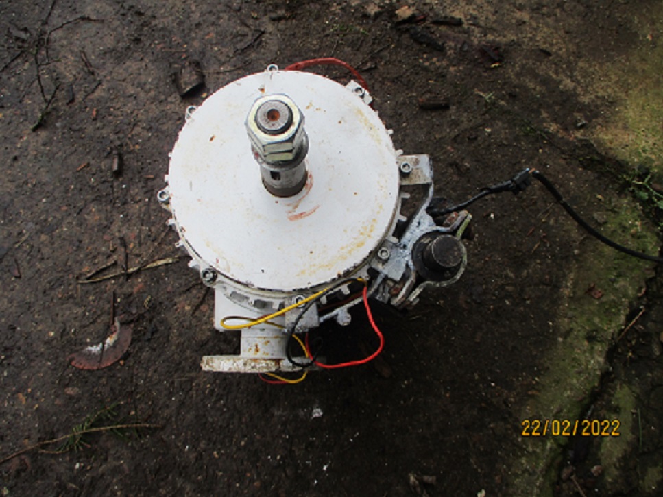 Hallo,nein ,er ist seitl, angeschraubt,die Nabe mit den Holzflügeln,hat ja Ausschnitte ,das gute ist; das die Holzflügel in dem Bereich ,ca.6cm breite Auflageflächen anbieten,so das ,das Flügelprofil in keinster Weise beschädigt wird! Natürl, muß die Magnetbremse geschaltet sein ,und zusätzl. noch ,die Windfahne optimal aus der Hauptwindrichtung gezogen werden,bis wir einen fast Stillstand haben,ers dann kann man am Boden mit einer kleinen 12v. Batterie,den Bolzen rausfahren lassen,durch umpolen wieder zurück ,für den Freigang! Das anbauen an den Mast werde ich heute erledigen,,das KABEL ,wird an dem Windfahnen Rahmen fixiert,außerdem am Gehäuse ,mit einer Reservelänge,die bei einem Furling,dieses zuläßt ! Ich hoffe es gelingt mir,auch bei sehr geringen Drehzahlen,den Bolzen schnell genug, zwischen zu schieben,ansonsten,der hat nur 1500N Druck ,macht 150kg,da bricht der die NABE ,oder das Gehäuse nicht kaputt,falls der gegen den Stahl schiebt,soll aber nach möglichkeit nicht passieren! Werde dann mal berichten,wie es klappt ,morgen soll es ja wohl noch mal bis 60km/H geben,da ist mit der Methode wohl noch ein kompletter Stillstand zu erreichen, nur zum testen,bei der Windgeschwindigkeit ,kann er normalerweise weiter laufen! Mir ist nur bewußt,das man bei angesagtem Sturm,rechtzeitig stillegen sollte,denn bei 90,oder 100km/h ,da kanstte denn nur noch zuschauen,bis es ausglüht,oder zerreißt ,das holt man mit der Stromerzeugung erst nach einem Jahr wieder ein,auch nur weil ich ja noch 2weitere Mühlen habe,derzeit dann nur 2, !!