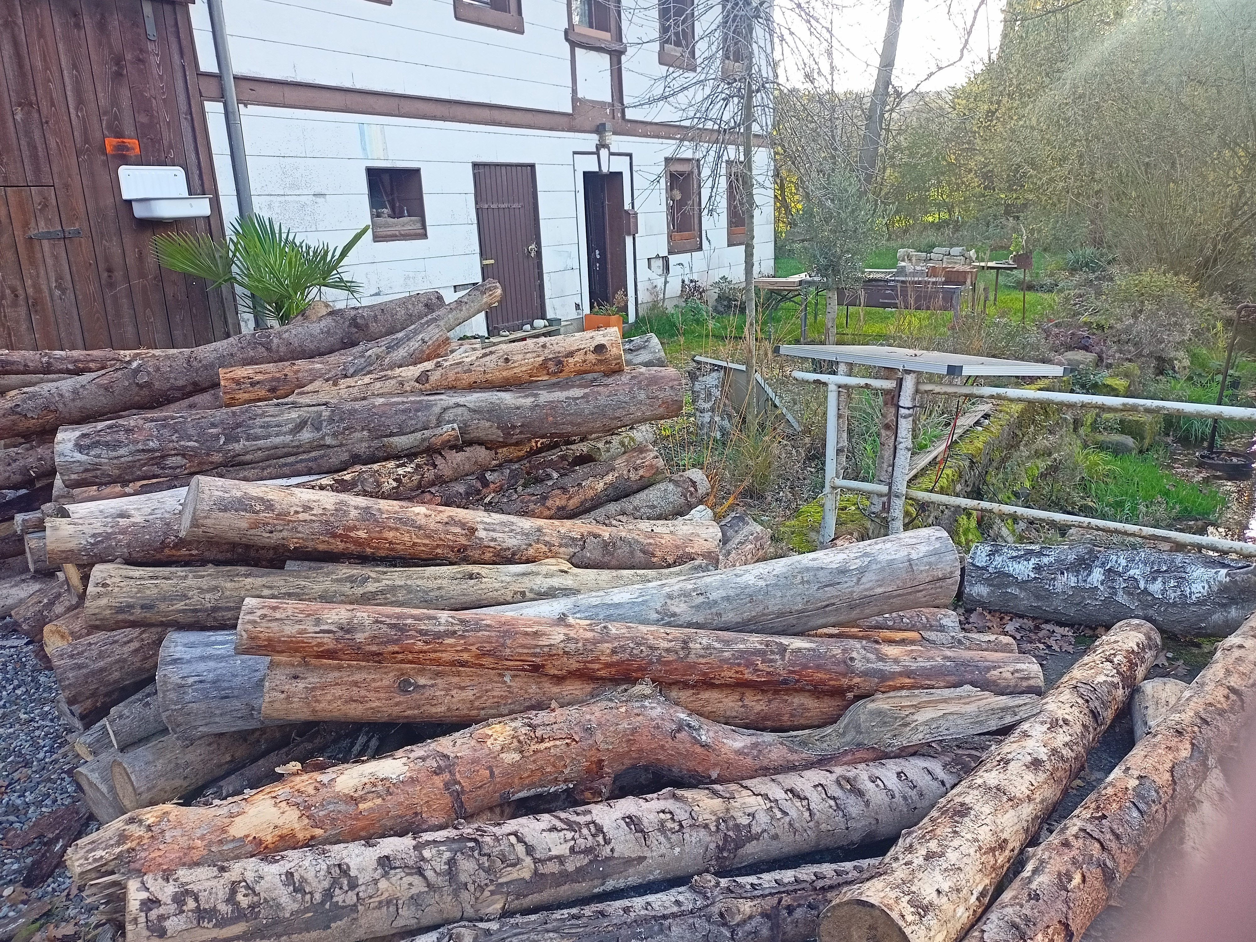 Dein Brennholz sicher, bei dem Haufen Stämme - na klar, da hätte ich auch zur 220V AC Kettensäge gegriffen! Nach 1-2 Stämmen in passende Scheiben geschnitten ist ein kleiner Akku reif für`s Ladegerät.