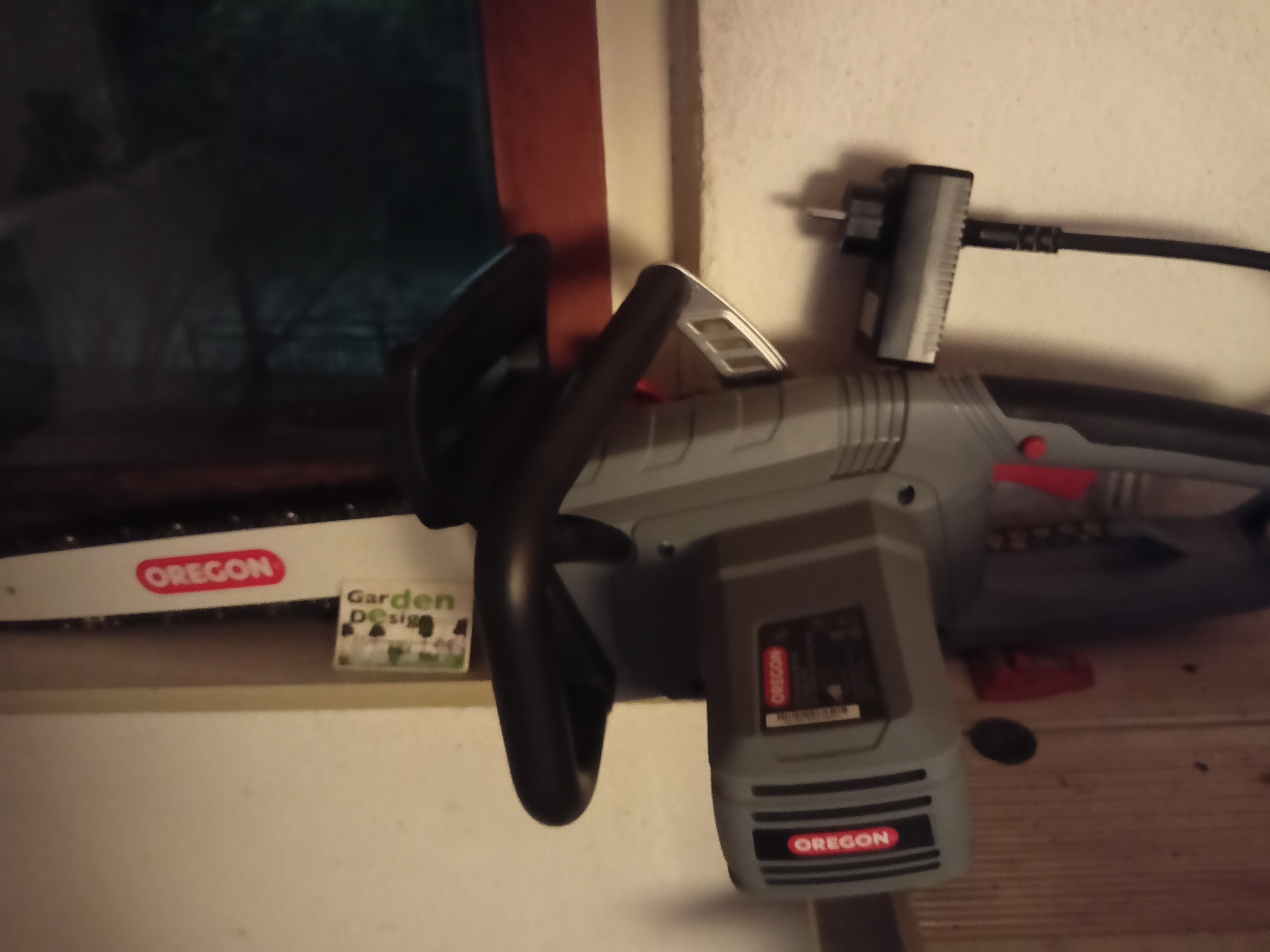 Ich habe mir eine 35 cm Kettenblatt - Husquarna Akku Kettensäge gegönnt, fast neu mit Akku 250 Euro. Ohne Kabelsalat.