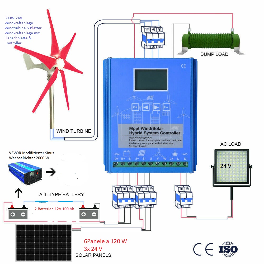 ich besitze eine kleine PV-Anlage 24V (6Panele a120W) und ein Windrad 24V 600W. Ich möchte jetzt den Strom in mein Haus einspeisen.