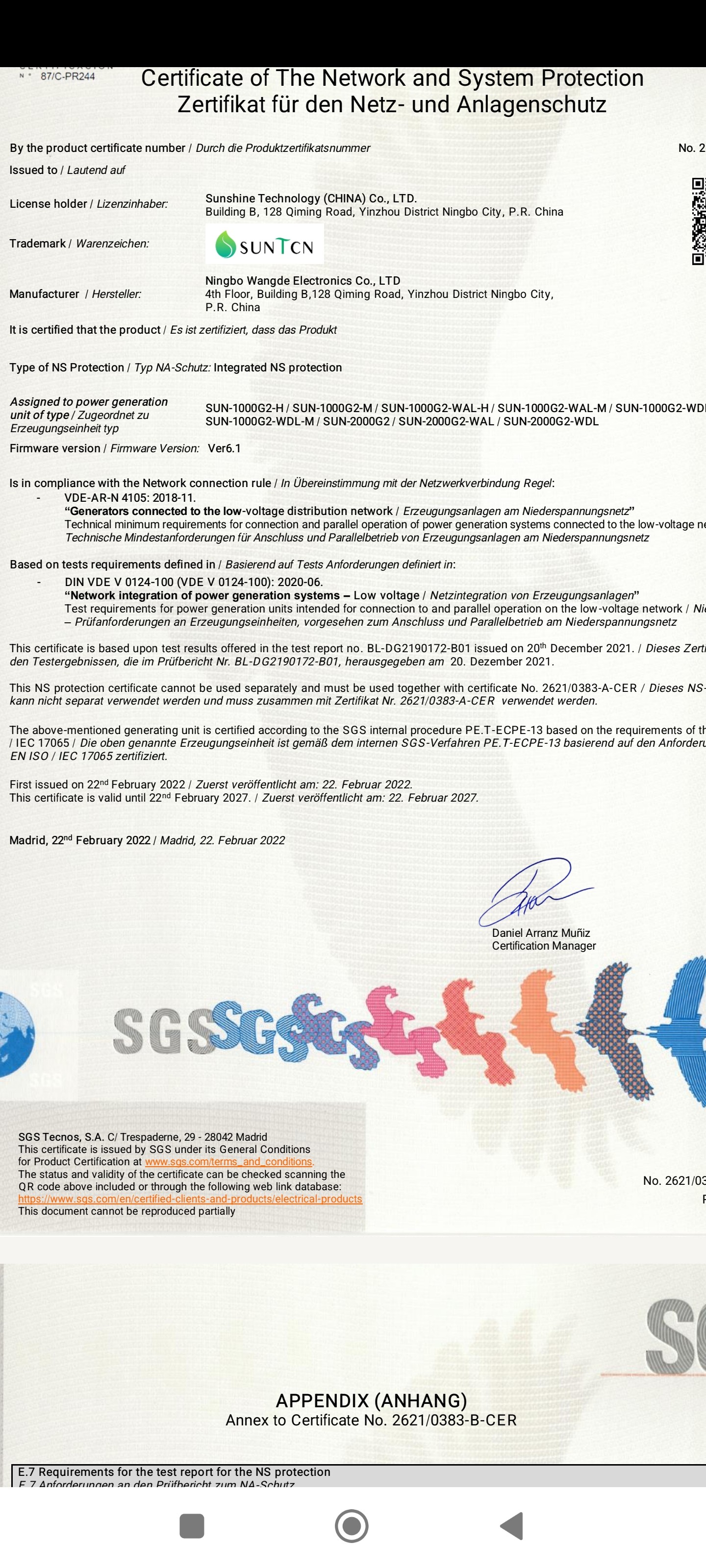 1. Lumentree ist nicht Urheber der SUN-WR, sondern nur eine Marke von Sunchine Technology (CN), von CW im Telefonat Suntech genannt. Besser wohl SUN T CN, s. Zertifikat im Anhang