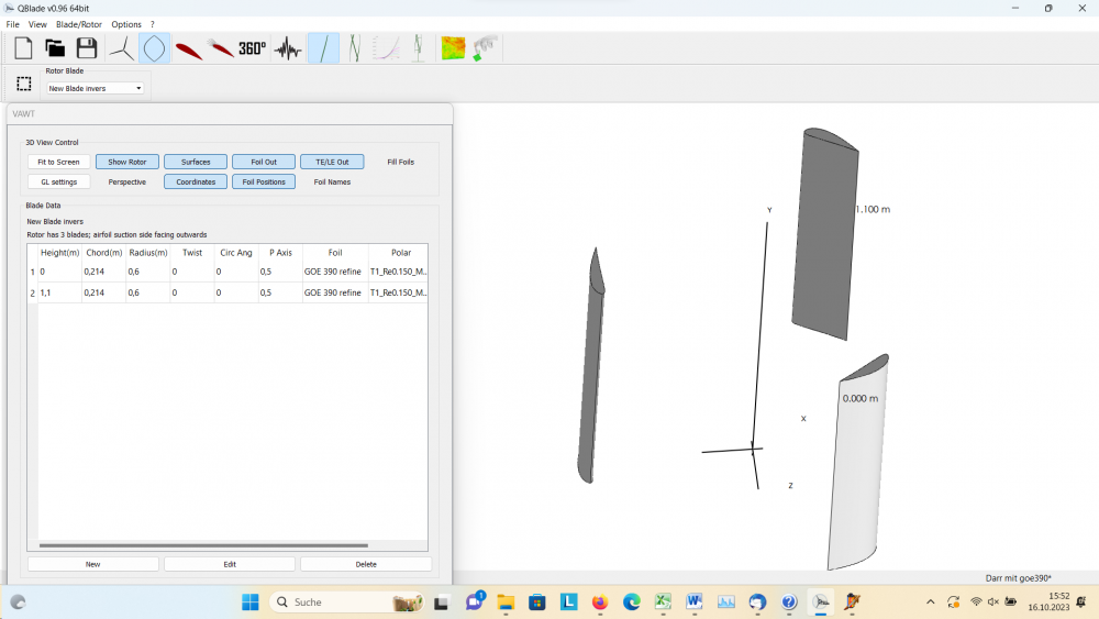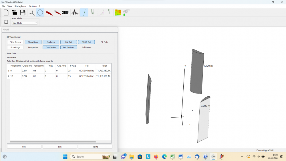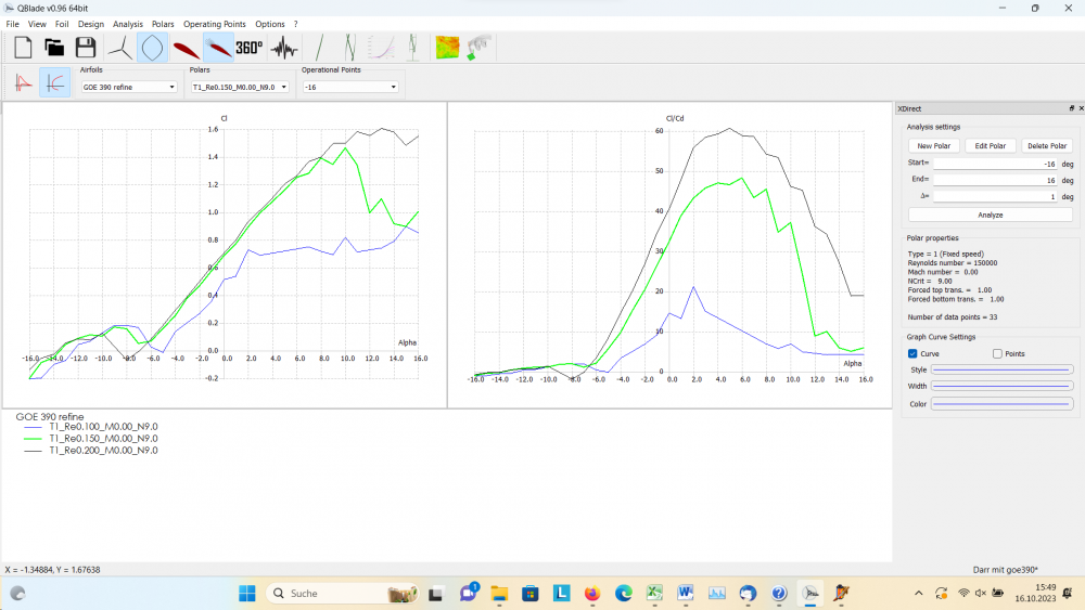 Habe so einen 3-Blattrotor mal mit QBlade simuliert. Bilder zur besseren Sichtbarkeit mit re Maustaste in neuem Tab öffnen und dort Ansicht auf mehr als 100% stellen, mit Strg + .