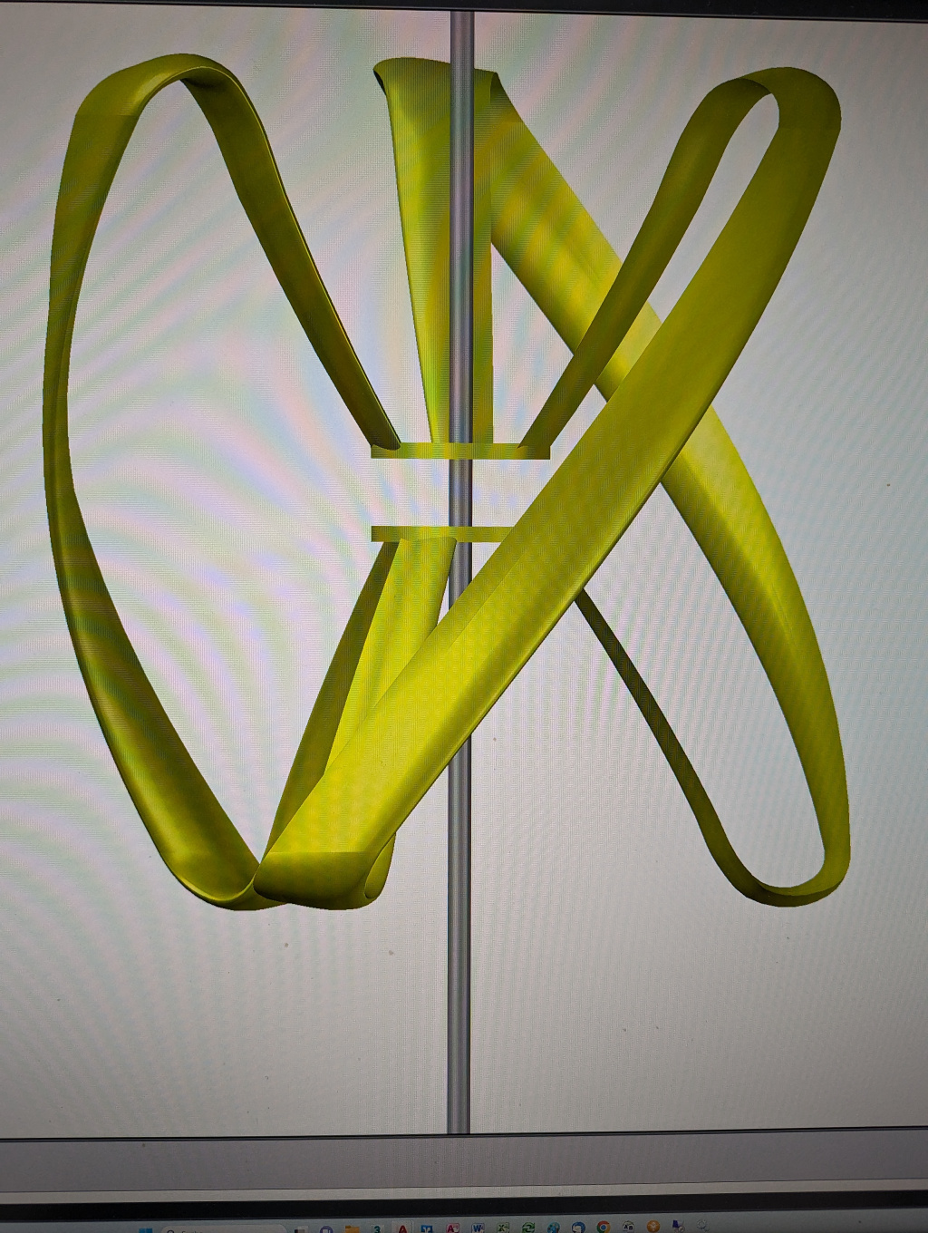 Im Grunde ist diese Form so konstruiert, um sich zu verformen. Nur ... es sollte ein einziges durchgehendes Möbiusband sein, was durch die Mittelachsenbefestigung ad aburdum geführt wird.