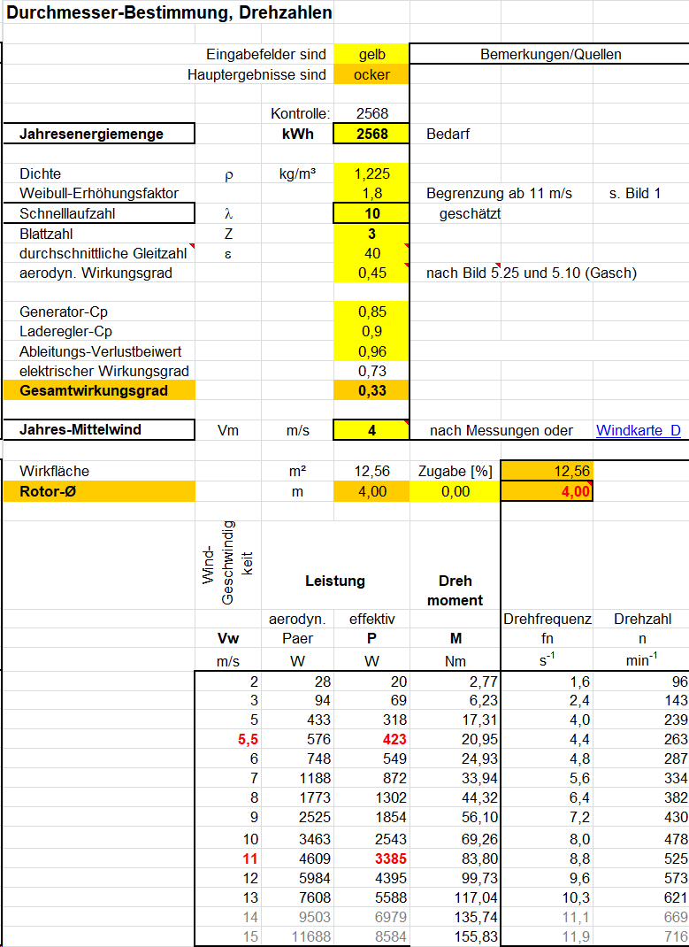 Im Anhang das was rauskommen müsste, wenn der Rotor gut wäre. Selbst bei 5,5 m/s müsste es etwa das Doppelte sein.