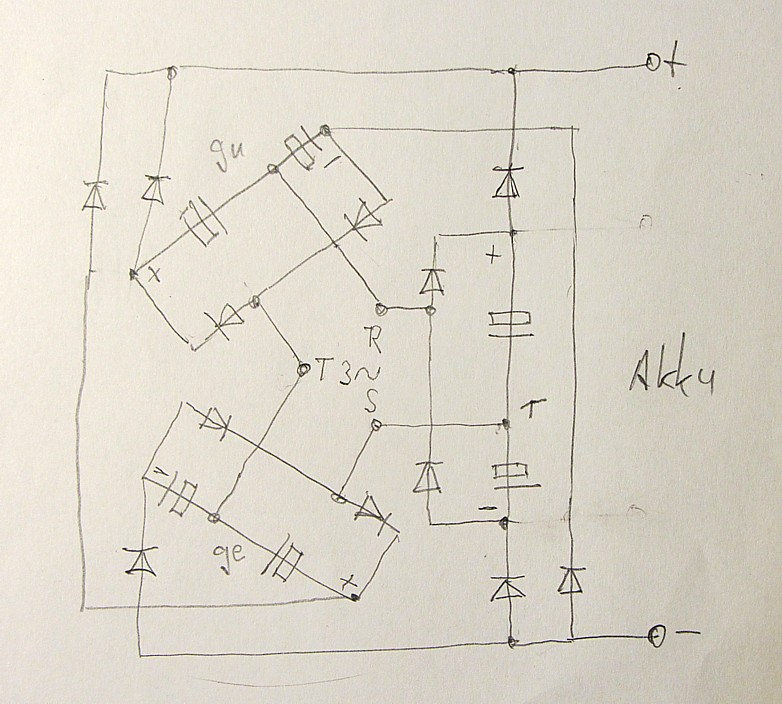 Wenn durch die vielen Dioden und Kondensatoren nicht zuviel Energie verbraucht würde- das spielt doch beim geringen zu erzielbaren Ertrag kleiner Windräder im Schwachwind bzw. in der Phase wo man Wert auf Spannungsverdopplung zum Laden Wert legt eine Schlüsselrolle dann wäre das sicher eine gute Lösung.