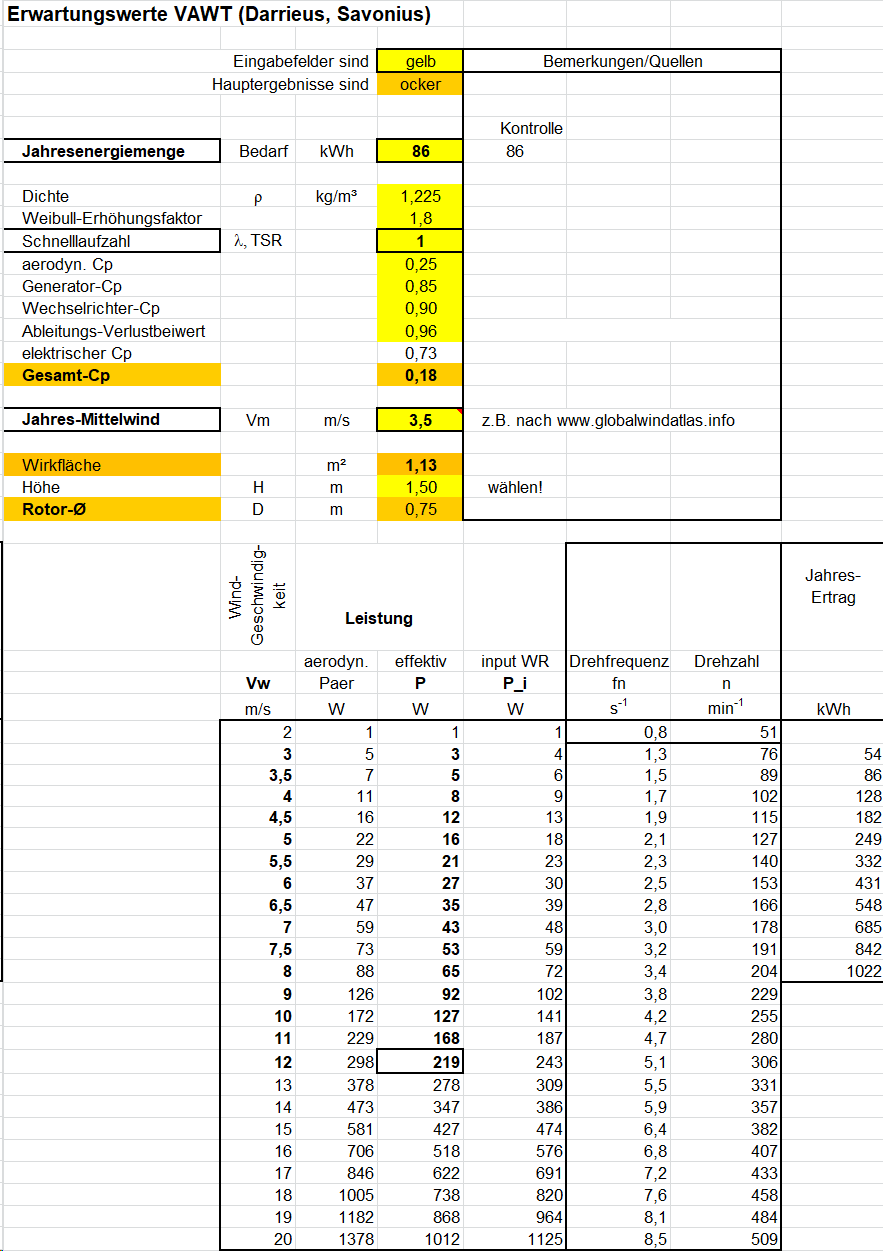 2. Das ist für kleine Windräder ein Handicap, denn diese Leistung wird z.B. beim Savonius 0,75x1,5 erst ab ca. 6,5 m/s erreicht.