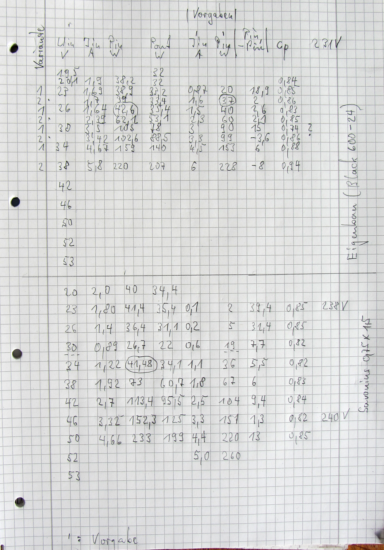 Messtabelle im Anhang, handschriftlich, da ich bei den Ergebnissen keine Lust habe, das für EXCEL in die Tastatur zu hacken.